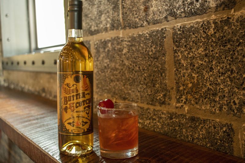 It starts with our very own award-winning whiskey that is delicately aged and made from a blend of locally grown winter wheat and corn at 65% corn and 35% wheat. This 60-proof wheat and corn whiskey is then infused with rich creamy all-natural butterscotch to give it a smooth sweet finish that melts over your pallet.